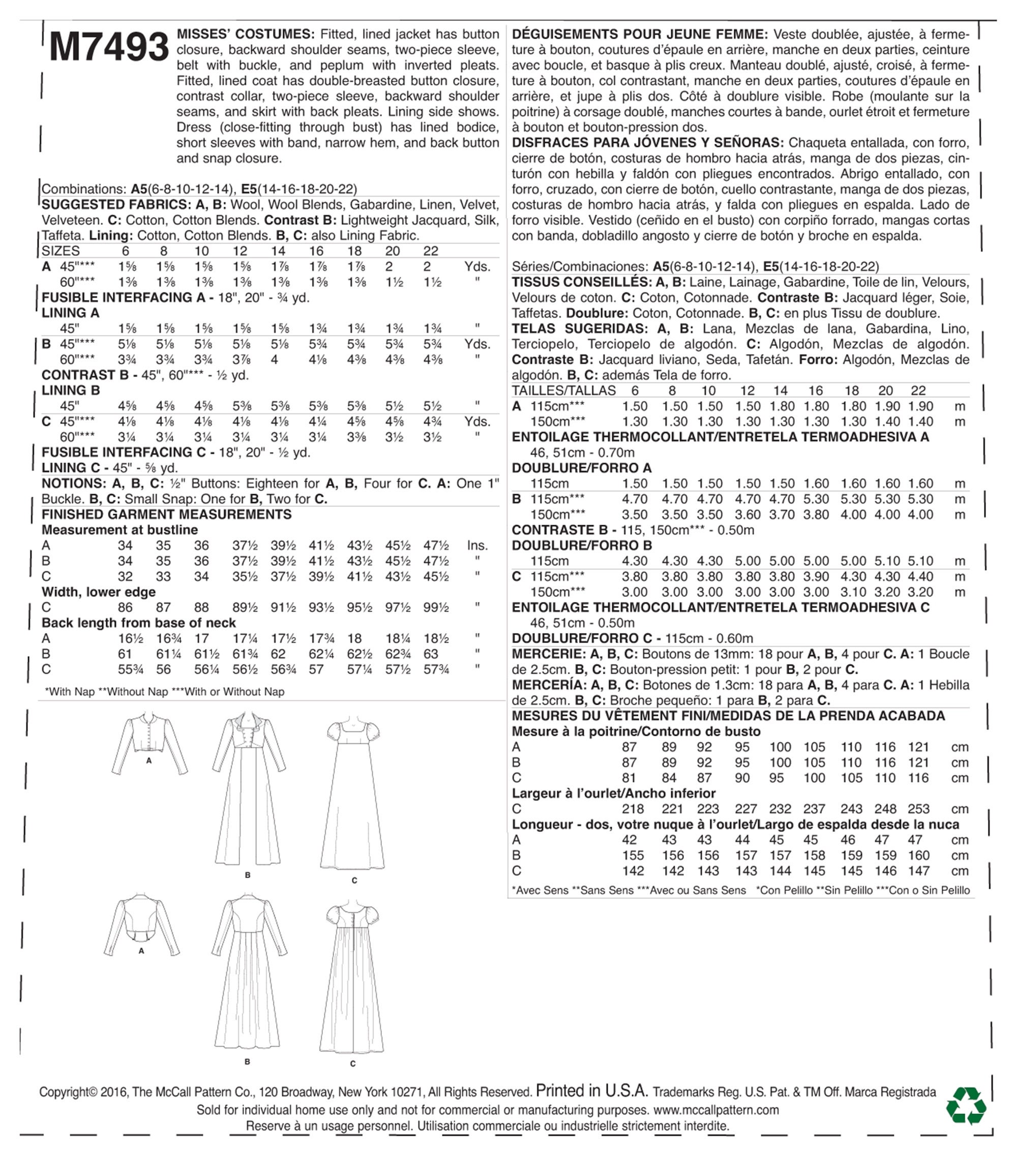 Mccalls Naaipatroon M7493 Periodekostuum Jurk Kort Jasje Etsy Nederland